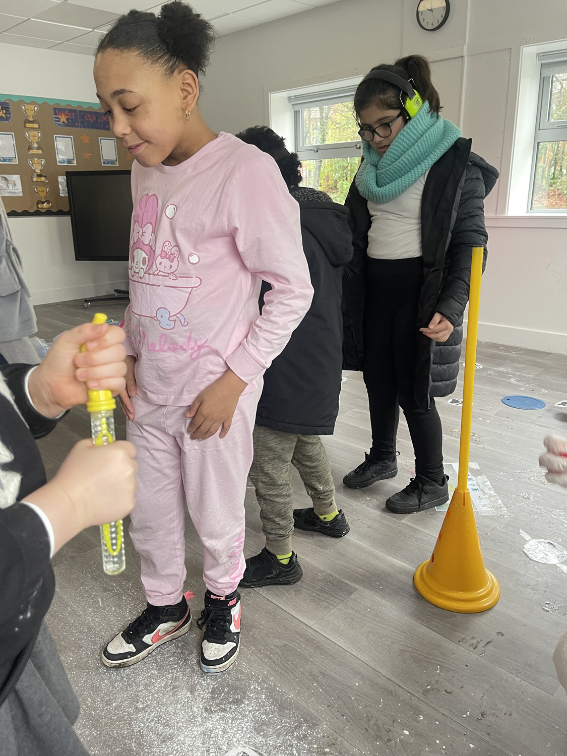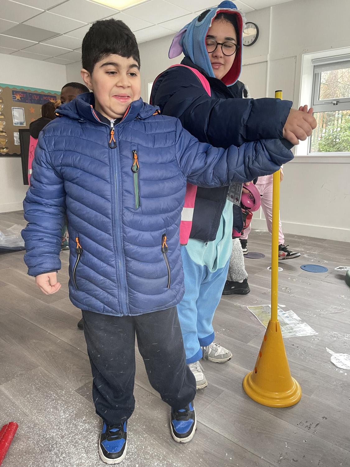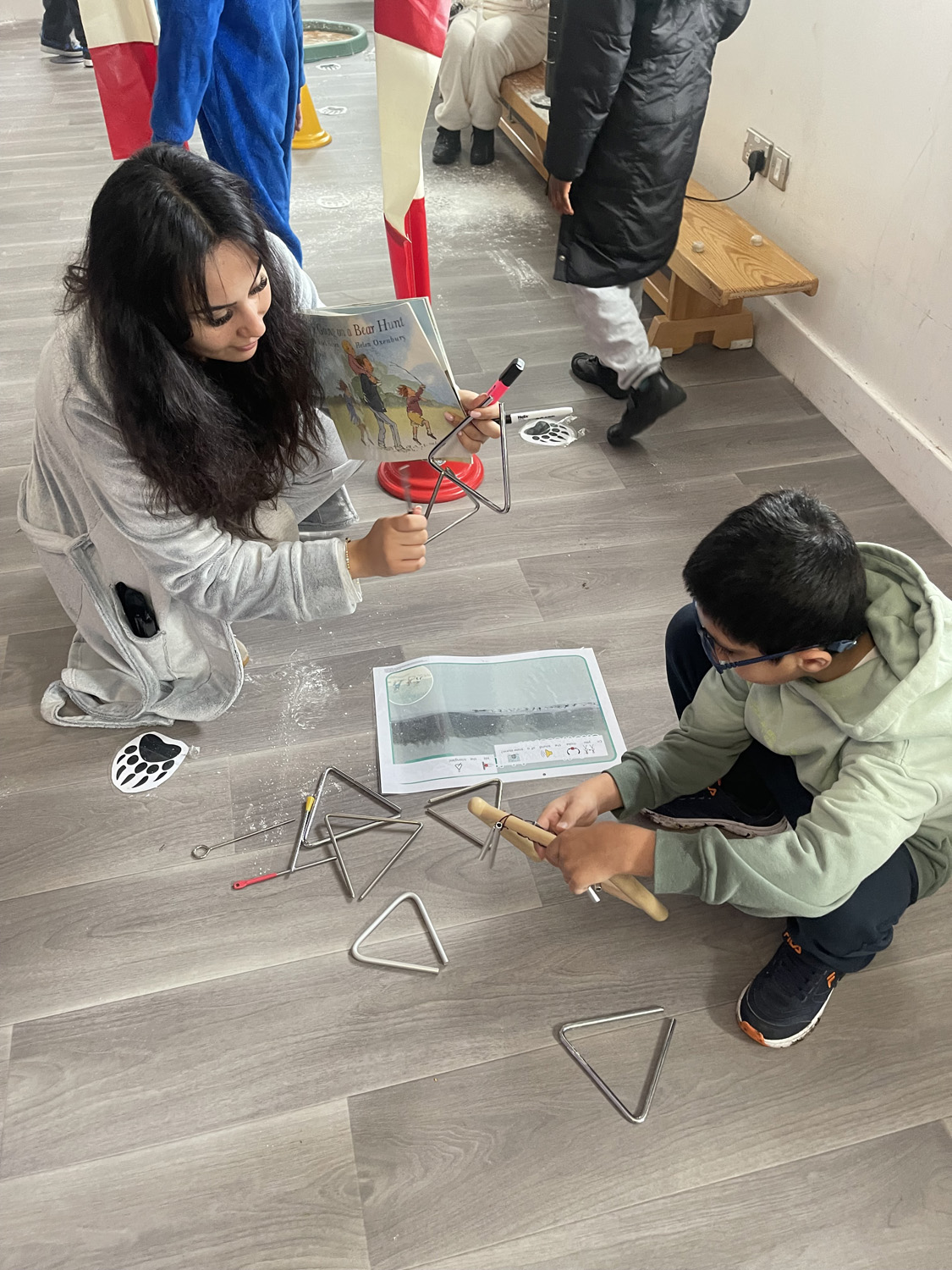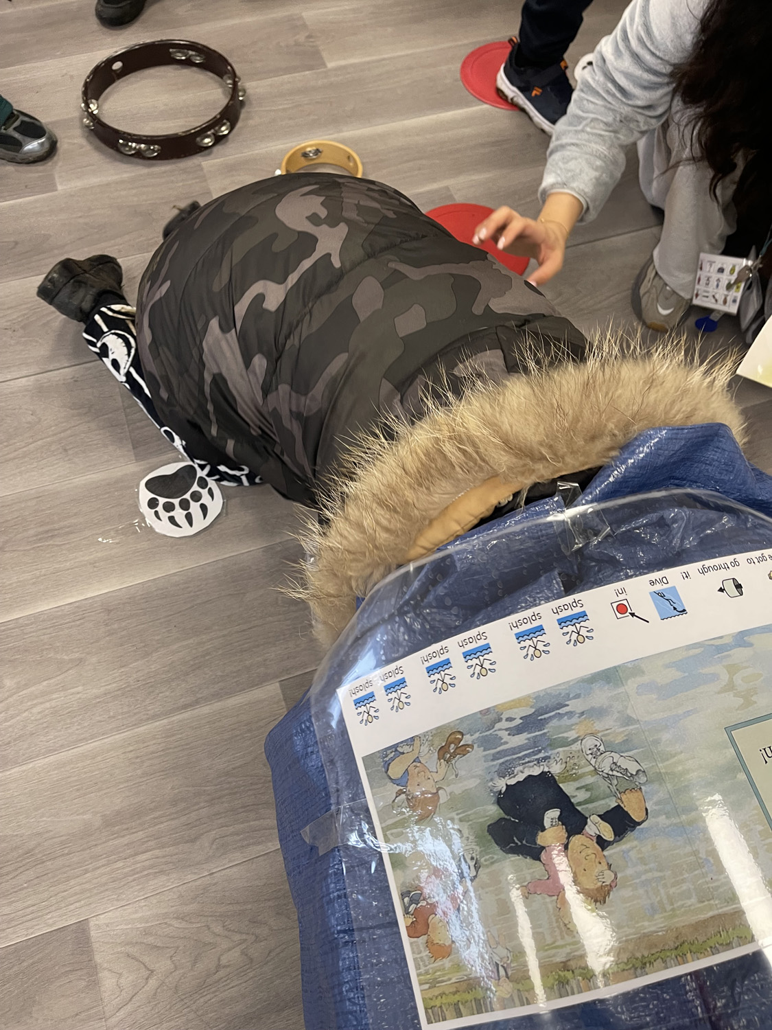 Our amazing colleagues brought the story to life by recreating every part of the journey. There was a swishy-swashy forest, a real and very muddy mud pool, crunchy snow, whooshing wind, and even a dark cave where a very friendly bear was waiting to say hello.